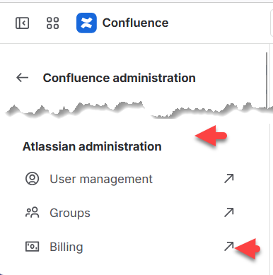 In the Confluence administration menu, go to the Atlassian administration section and click Billing.