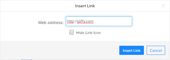 4. Click Insert. After inserting the link, the text is blue and underlined.