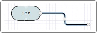 Once you draw a line or connector (see Adding lines and connectors), you will notice small circles at each endpoint. If it is a connector with more than two segments, each middle segment also has a small circle. These circles work like the squares around the boundary boxes of shapes.