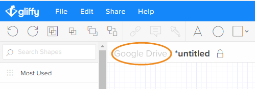 You see either Gliffy or Google Drive (if linked; see Linking to Google Drive) to the left of your diagram name. This indicates where that diagram will be saved by default. When linked to Google Drive, you can select the default location where your diagrams are saved.