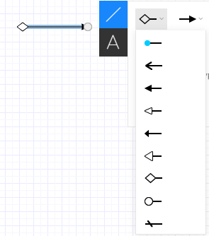 Specify the direction of the line by adding an arrow at the end. The direction in which the arrows points in these properties translate as: left = line start point and right = line end point. So if you draw your line from right to left, and you select the arrow that points to the right, your line will have an arrow pointing to the left. Consistently drawing your lines and connectors from start to end will make adding arrows much easier. Specific lines, such as UML, ERD, or BPMN, provide additional arrow ends, specific to that shape type.
